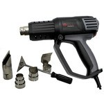 Потребляемая мощность 2000 Вт, регулировка диапазона температуры 50-600°С, регулировка потока воздуха 380/550 л/мин, наборы насадок и скребков, кейс, вес 0,85 кг.