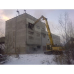 оснащен удлиненной стрелой 24м, на конце которой находятся гидроножницы для слома ж\б перекрытий, массой давления 500 тонн. Вес 34т.